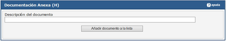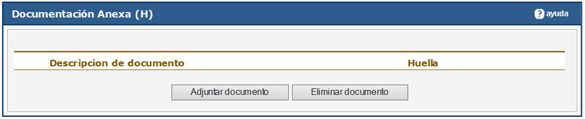 Pulsando el botón "Añadir documento a la lista", se incorporará la descripción del documento acompañado a la solicitud. Puede repetir esta operación con todos los documentos que se quieran incorporar a la solicitud. En el caso de que quiera eliminar alguno de los documentos incorporados, deberá marcarlo y pulsar el botón "Eliminar documento".